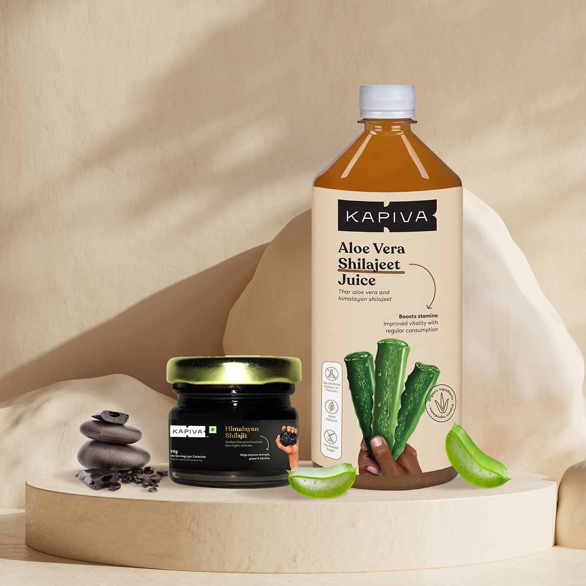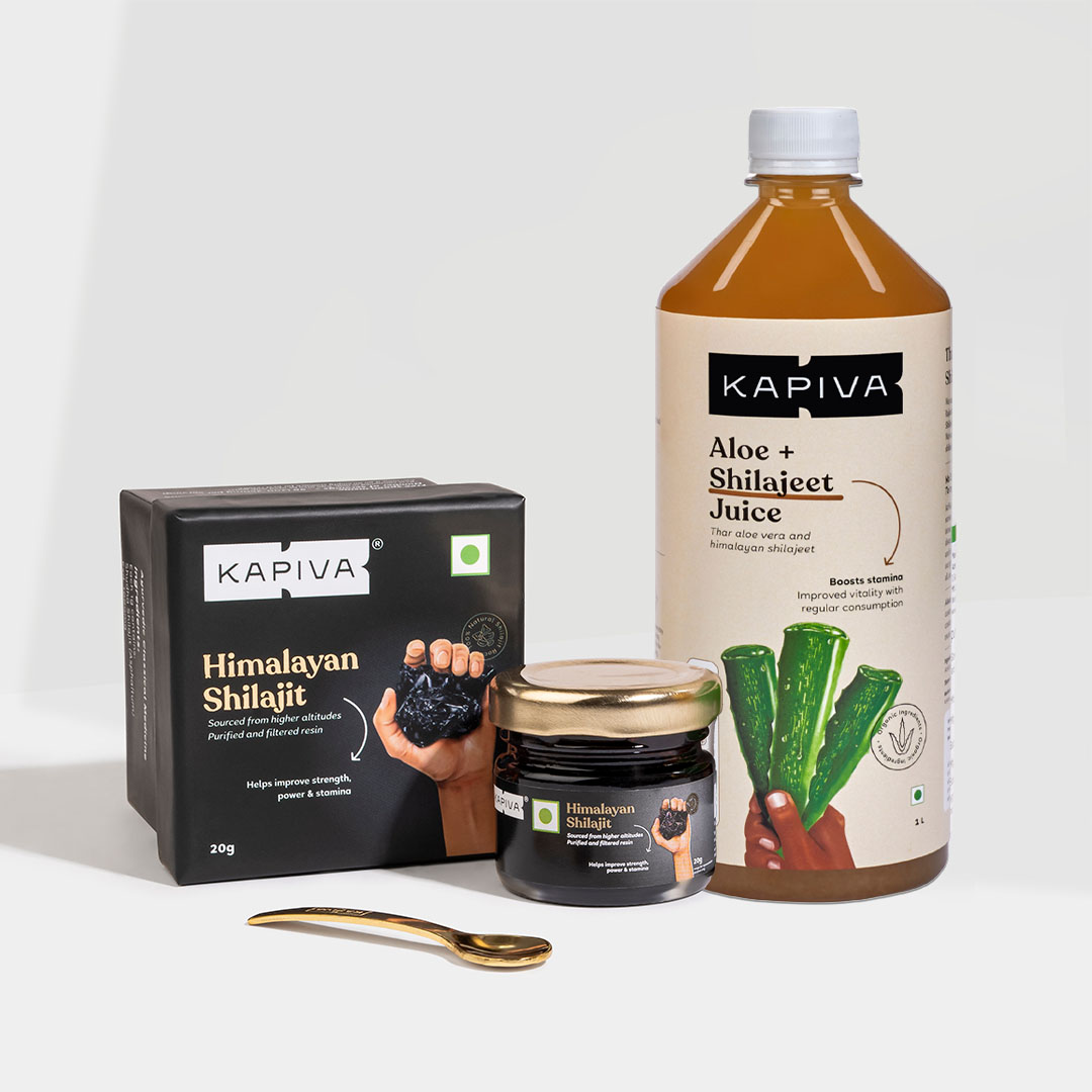 Say hello to your go-to morning tonic - Kapiva Aloe + Shilajeet Juice and Kapiva Himalayan Shilajit. From enhancing your stamina to supporting your immune system, both these ayurvedic supplements boost your physical and mental wellbeing.