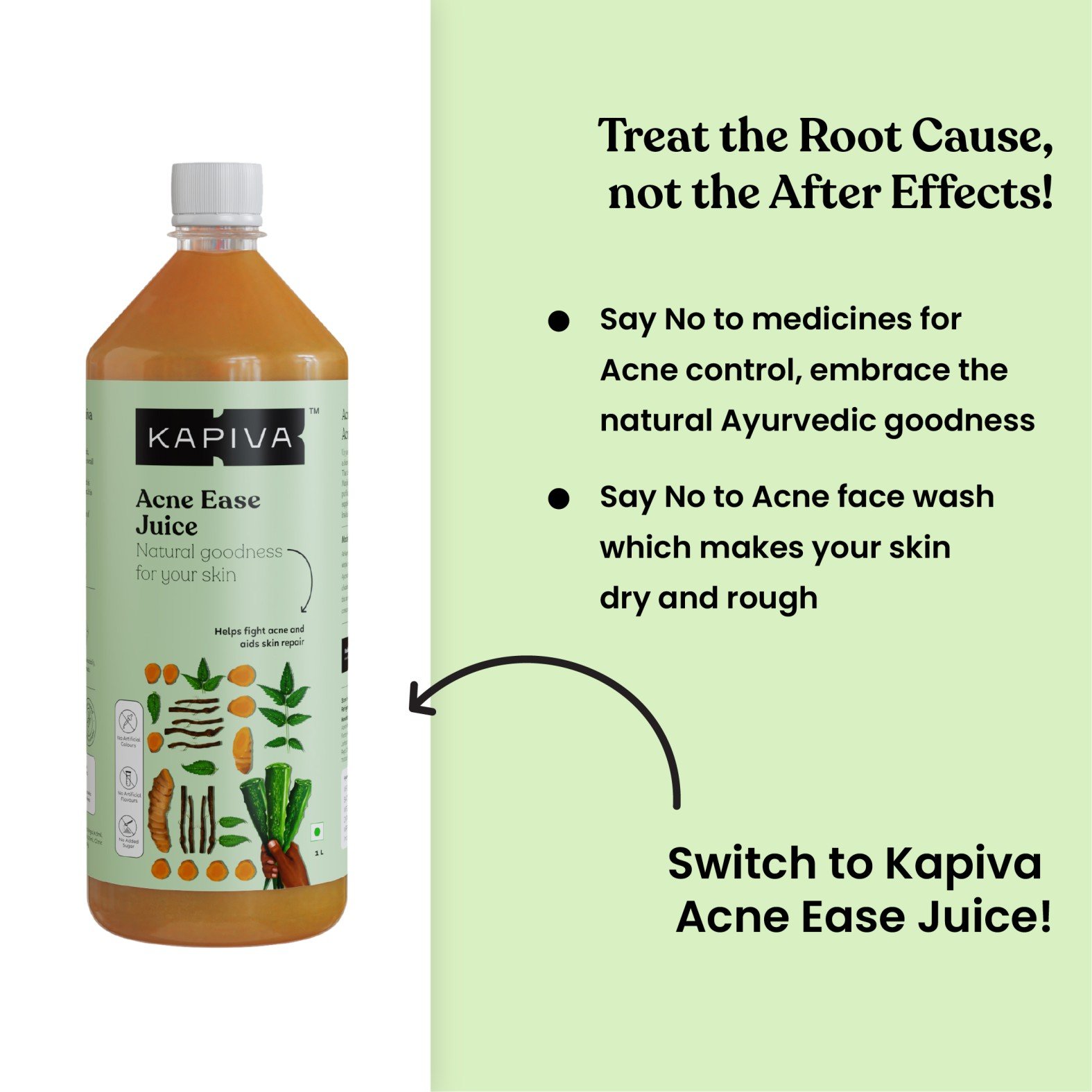 Solve your Acne problems by treating its root causes with Kapiva’s Acne Ease Juice. It is enriched with Ayurvedic herbs known for healthy skincare, providing the best nourishment & treatment for Acne.