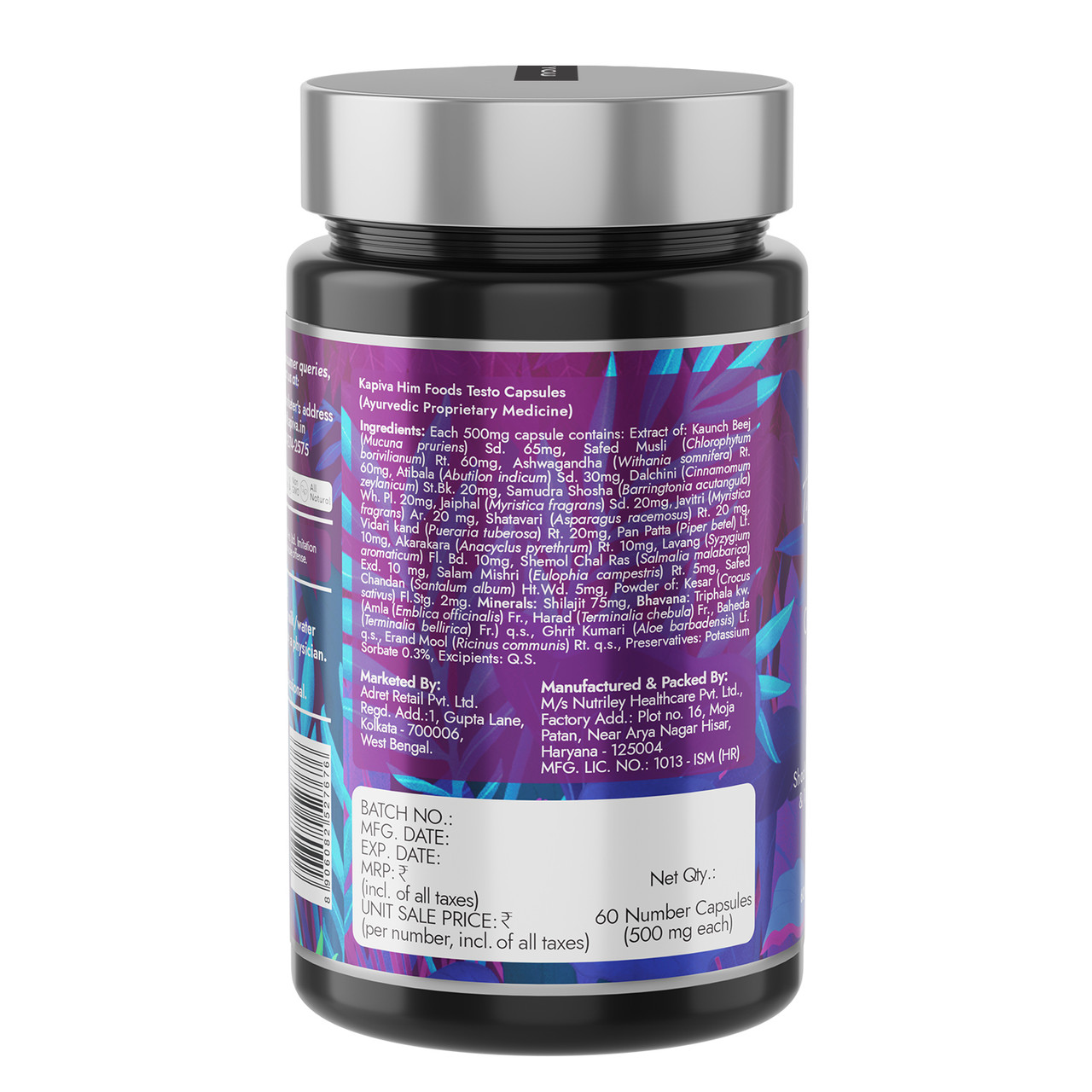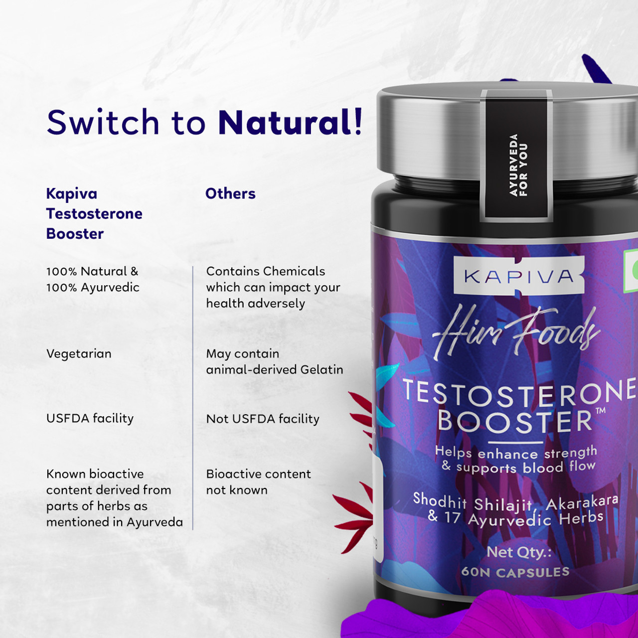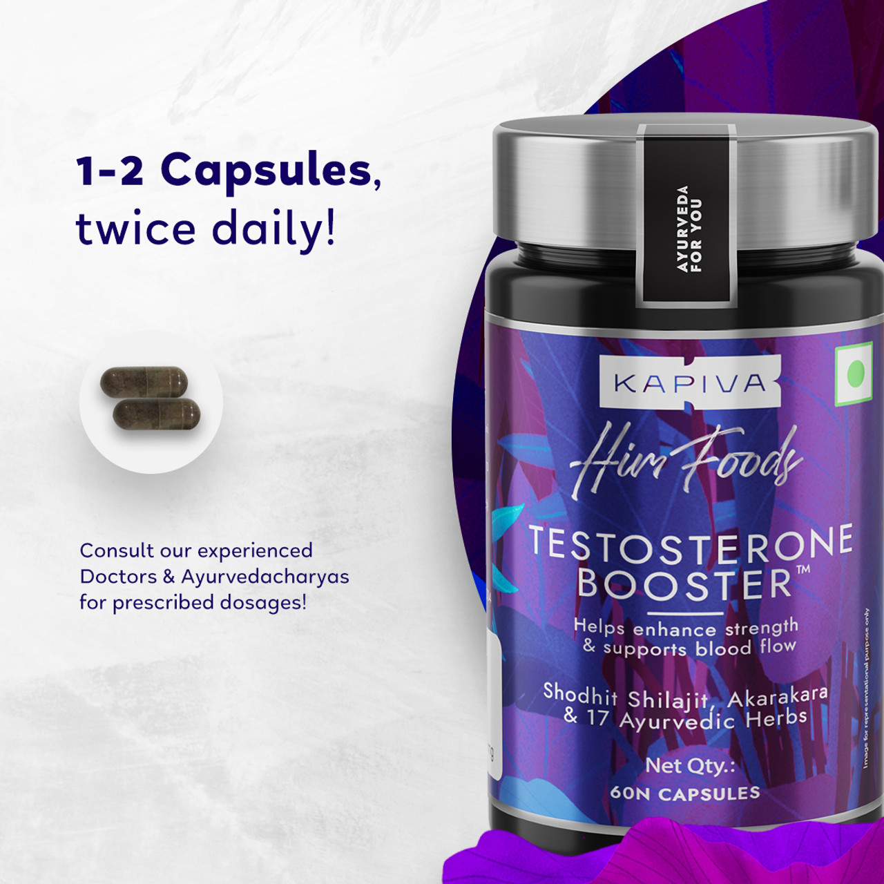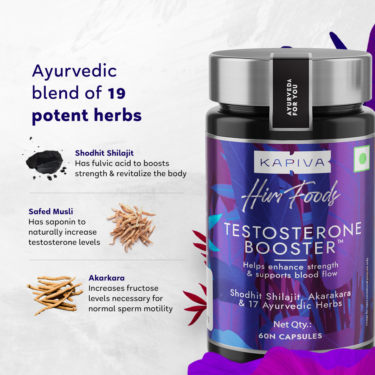 Expert-led formulation of Ayurvedic herbs- Akarakara, Shodhit Shilajit, & Safed Musli - to help increase testosterone & support daily energy levels.