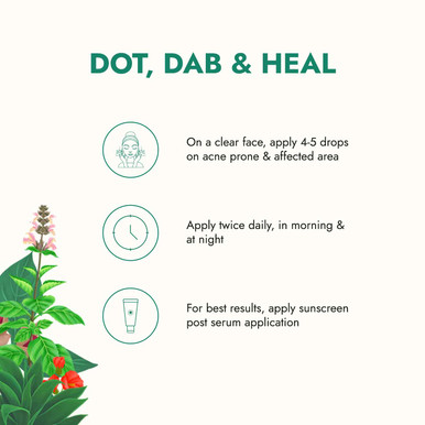 Apply* 4-5 drops on acne prone & affected area. *Disclaimer: Please do a patch test before application on sensitive skin.