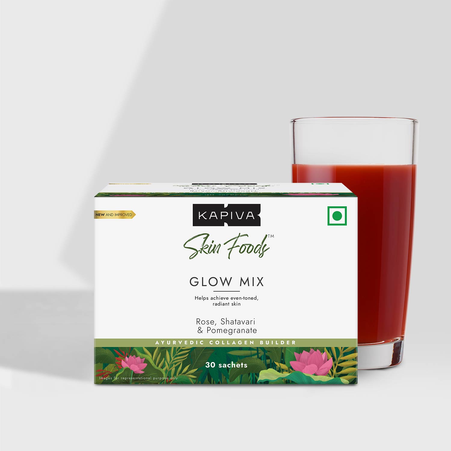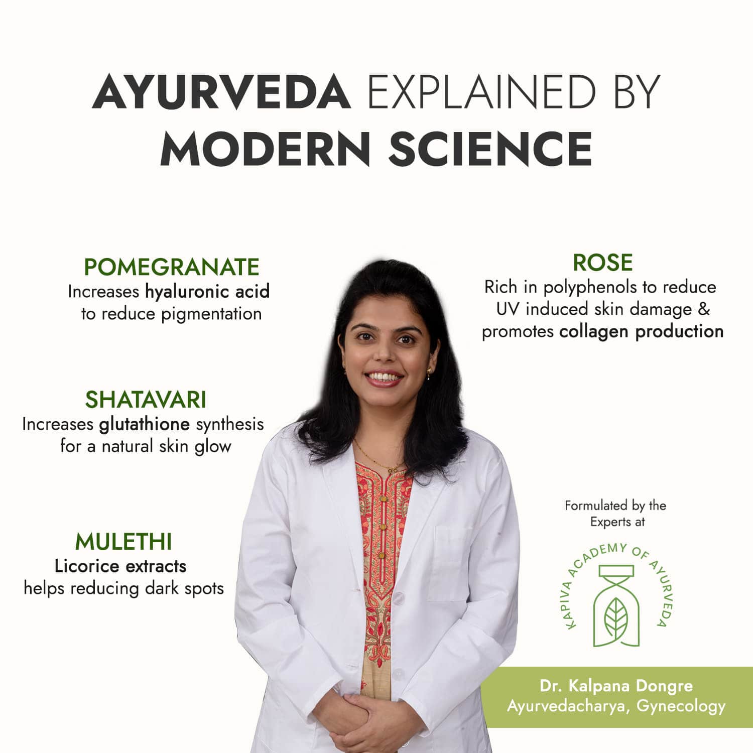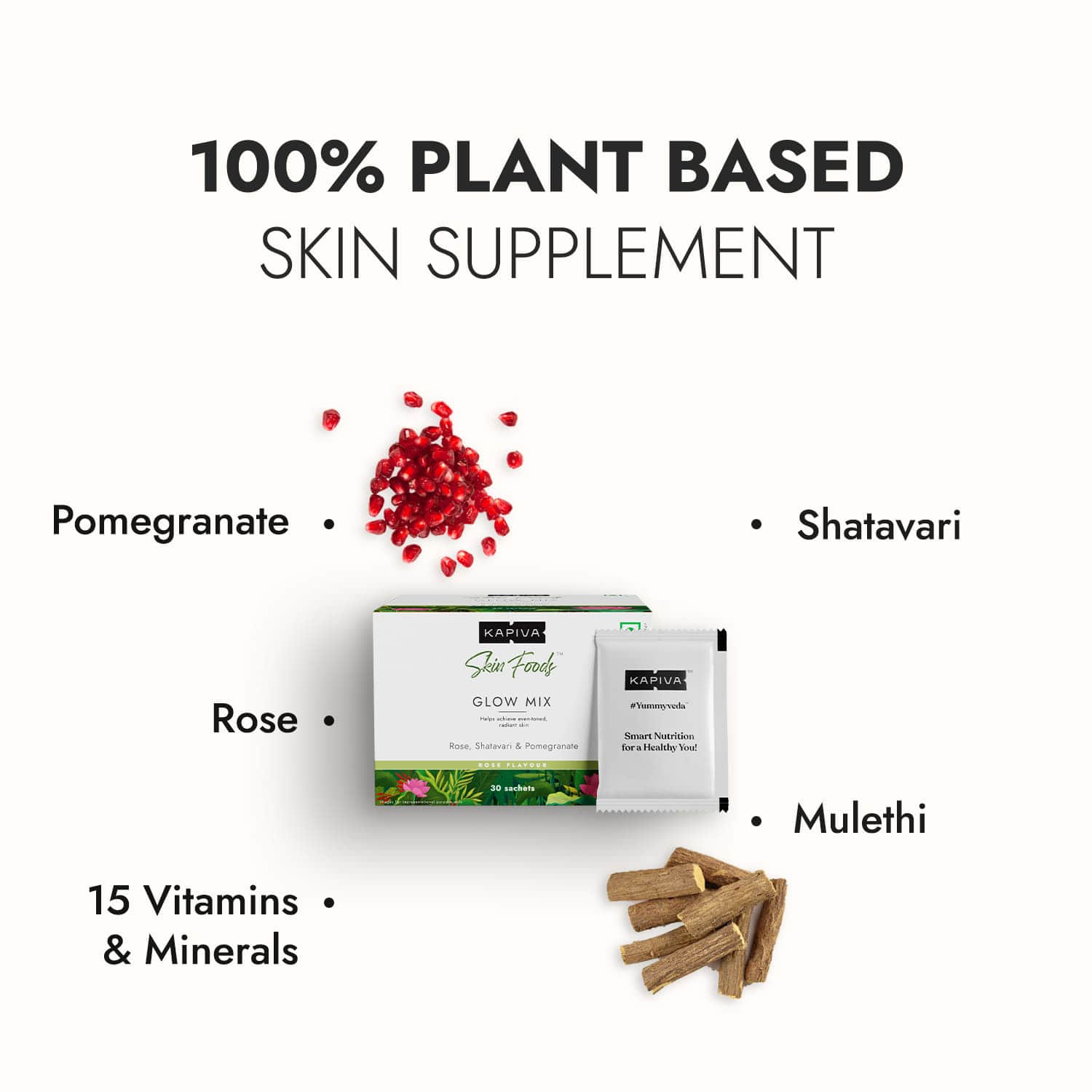 Ingredients like Rose, Pomegranate, Shatavari helps boost collagen, glutathione and hyaluronic acid naturally in the skin!