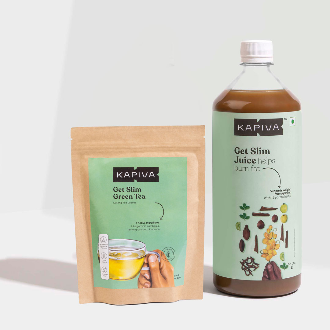 Meet your weight management goals with this combo. Get Slim Juice is a natural blend of ayurvedic herbs like flax seeds & castor. The tea also boosts energy levels and keeps you rejuvenated.